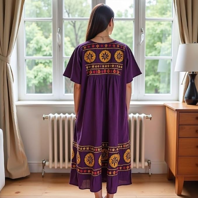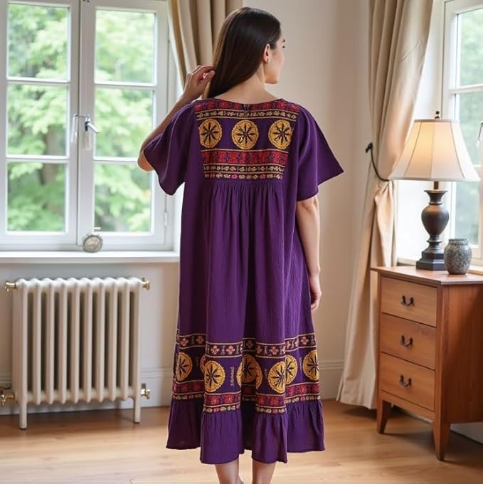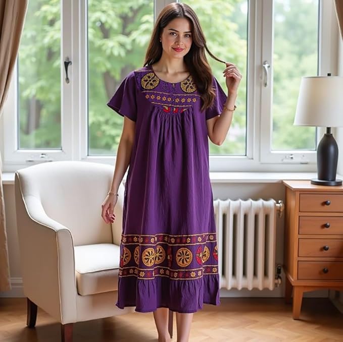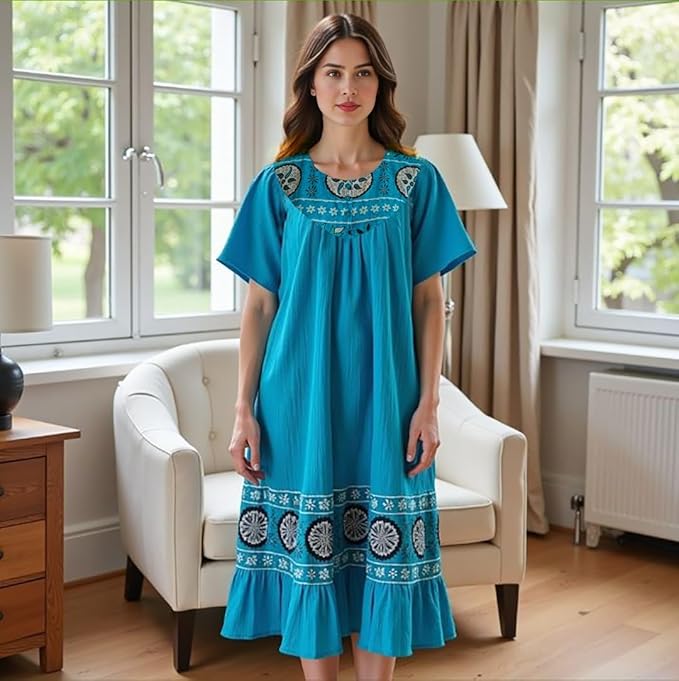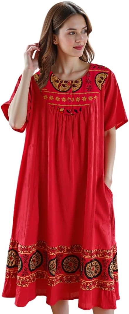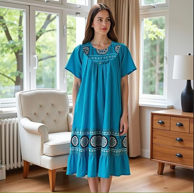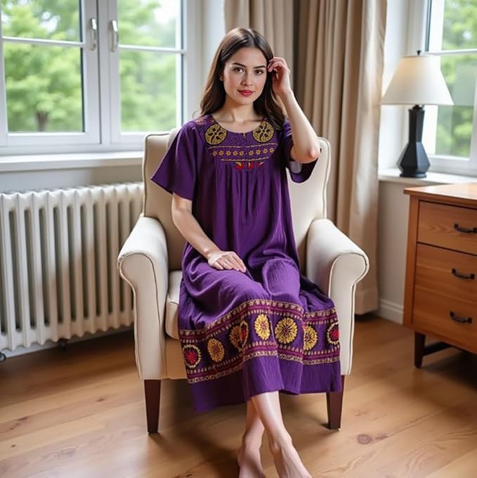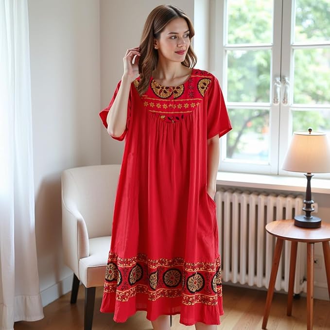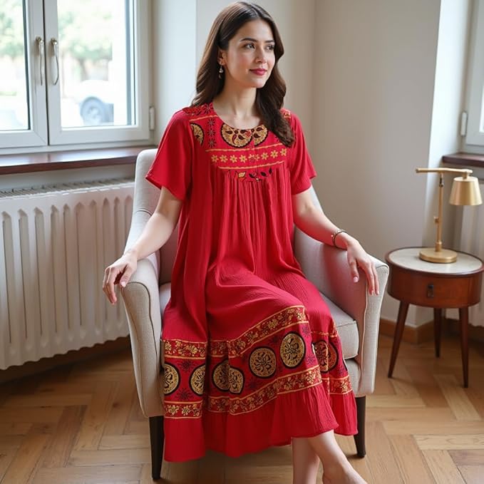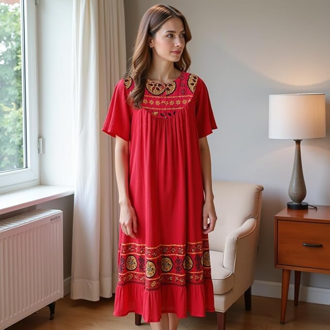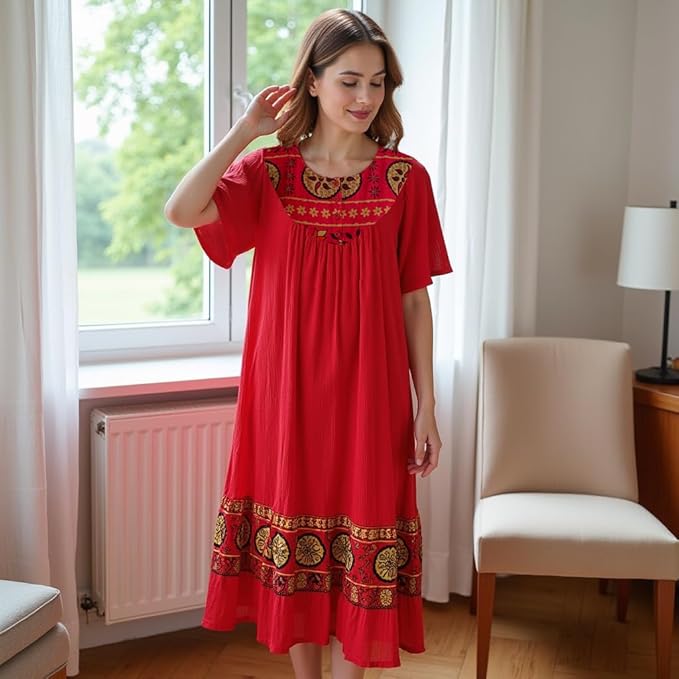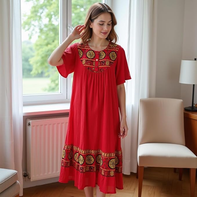 - Comfortable Lounge Dress for Women — Relax in this breathable, lightweight crinkle cotton gauze lounge dress designed for all-day comfort at home or casual outings.